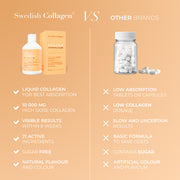 Vores højdosis flydende marine kollagen (10.000 mg/portion) er ekspertformuleret til maksimal absorption og smag i en behagelig frugtagtig smag.